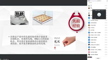 王华斌教授以造点新货(原淘宝众筹)平台爆款产品创新创业案例导入,引出先前经验、专业知识、社会关系和创新思维在创新创业过程中的重要作用,指出要紧跟新技术、新材料、新工艺,寻找以人为本的设计创业机会。