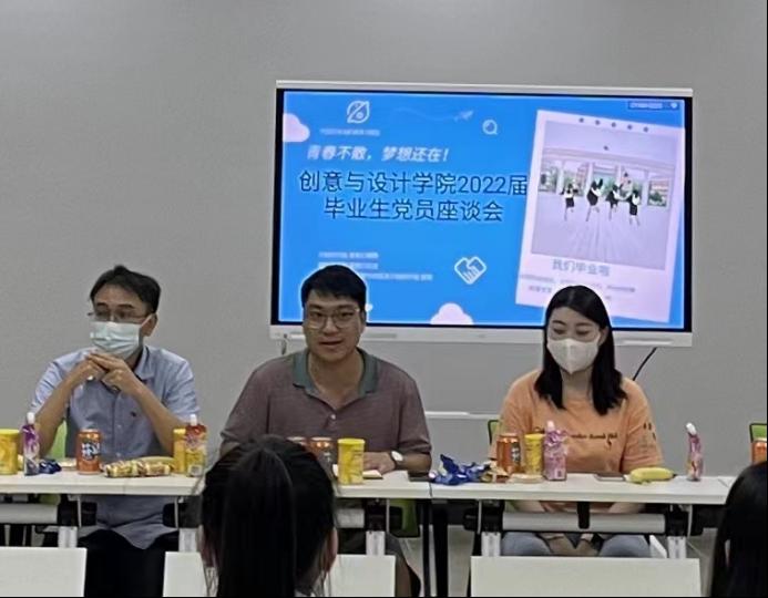毕业来临之际,为进一步了解和掌握我院毕业生党员工作及生活情况,收集学生对学校的建议,表达我院对毕业生的关怀,为毕业生排忧解难,2022年6月14日,创意与设计学院学生党支部在厚德楼B101会议室举行了毕业生党员座谈会。学院党委副书记兼学工办副主任钟纯,学生第一党支部书记李君摘,学生第二党支部书记郑金明和毕业生学生党员参加了座谈会。