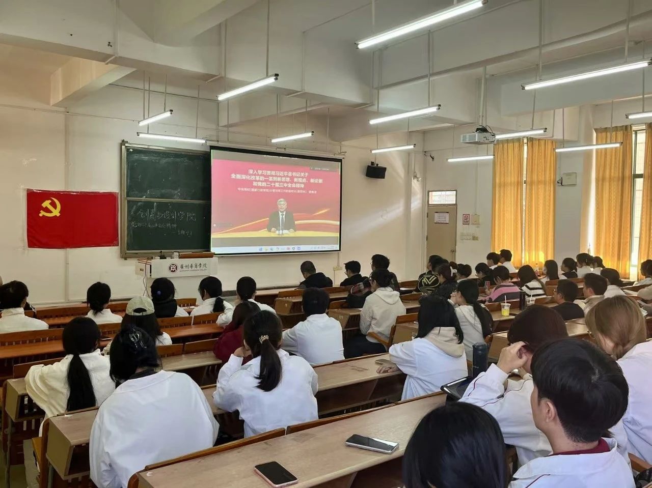 创意与设计学院全体党员共同观看学习视频——《深入学习贯彻党的二十届三中全会精神专题辅导系列课程》。该课程全面、系统、深入地解读了习近平总书记关于全面深化改革的新思想、新观点和新论断,涵盖了全会的各个方面,包括会议的重大意义、总目标、重大原则、重点任务、改革举措等,对全会精神进行了全方位、多层次的解读。