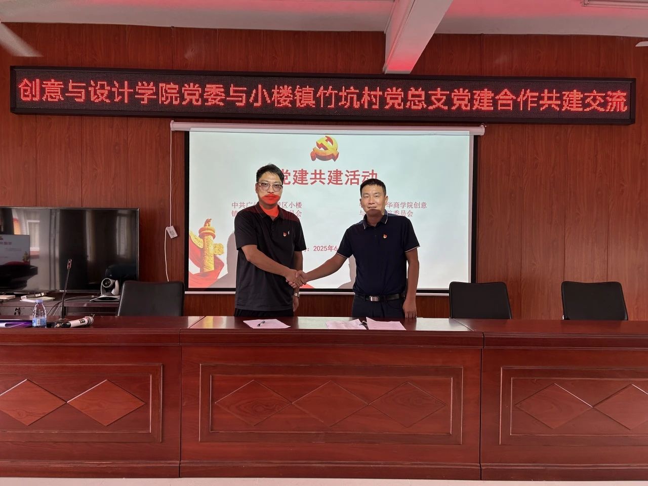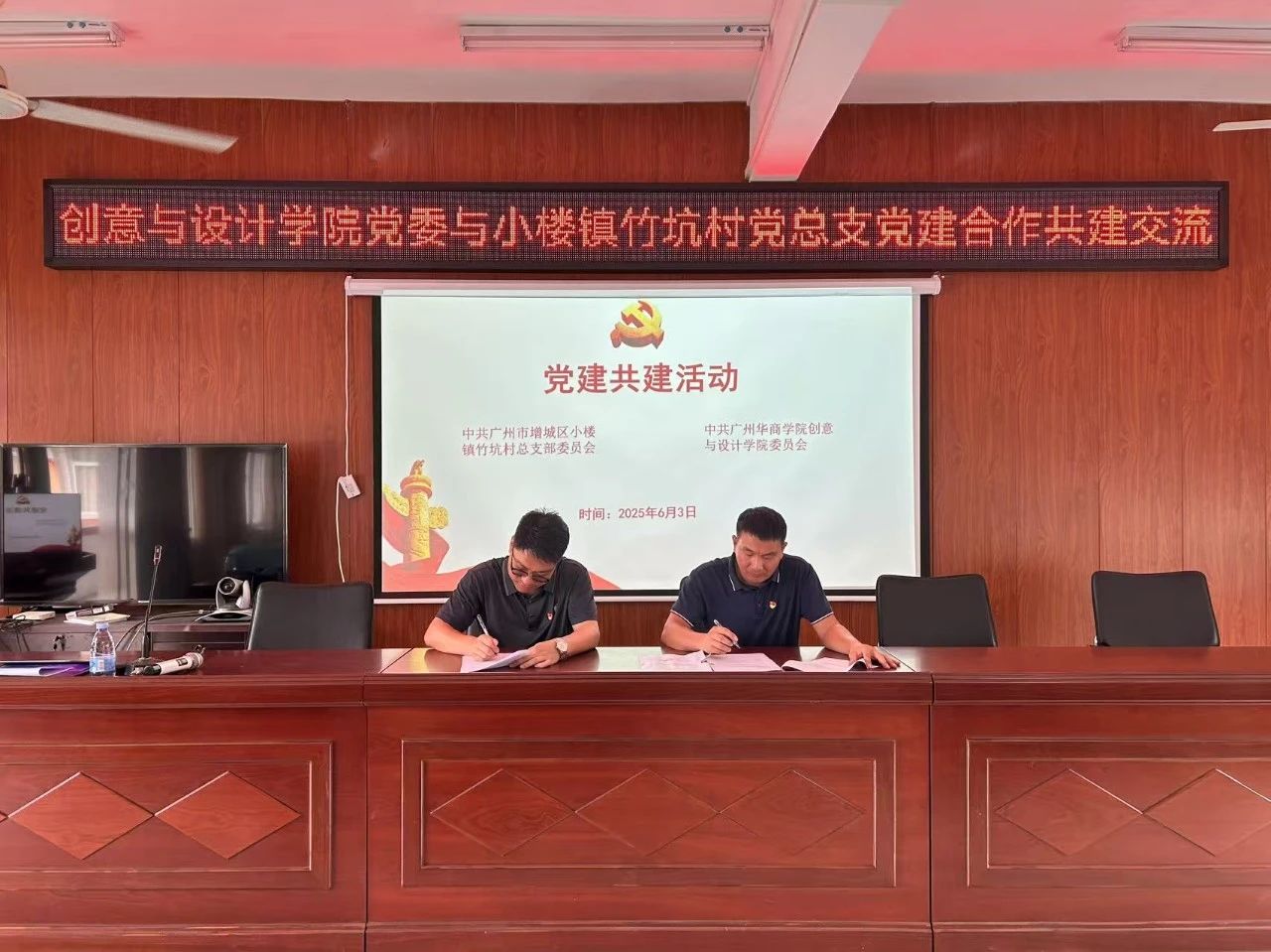 2025 年 6 月 3日下午,一场意义非凡的党建合作共建座谈会在小楼镇竹坑村党群服务中心热烈开展。广州华商学院创意与设计院党委与竹坑村党总支,以党建为纽带,共商合作、共谋发展,成功签署合作协议,为校地协同发展注入强劲动力。