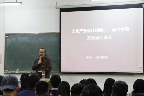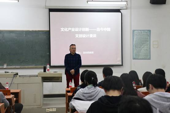 吴教授从文化创意设计实践概况及背景、国内外文化产业发展现状以及具体的文创案例分析等方面阐述了当代中国的文创设计概况,讲解深入浅出、逻辑严谨、案例丰富,受到师生们的欢迎。