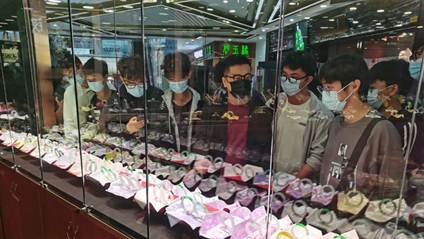 “他乡之玉,四会成器”,说起闻名遐迩的肇庆四会玉器产业,不能不提的地标性市场:玉博城和天光墟。琳琅满目、种类繁多的精品翡翠制品、舒适干净的经营环境以及高端大气的形象店面给这次考察留下了深刻的印象。