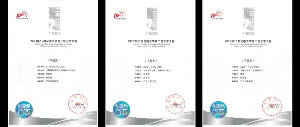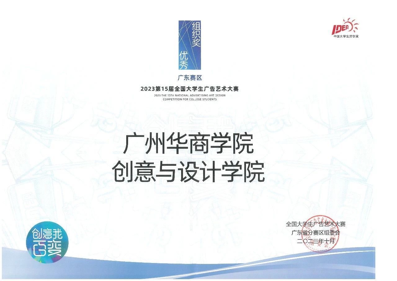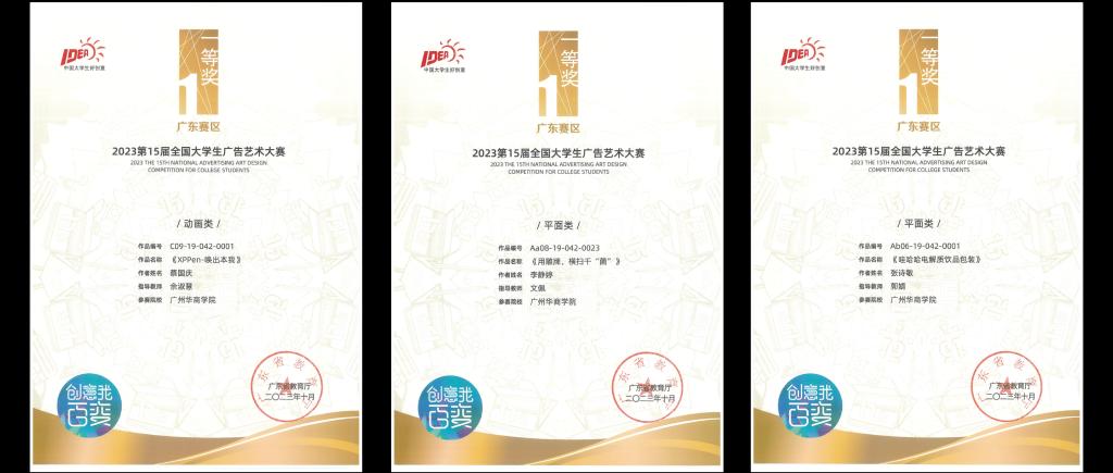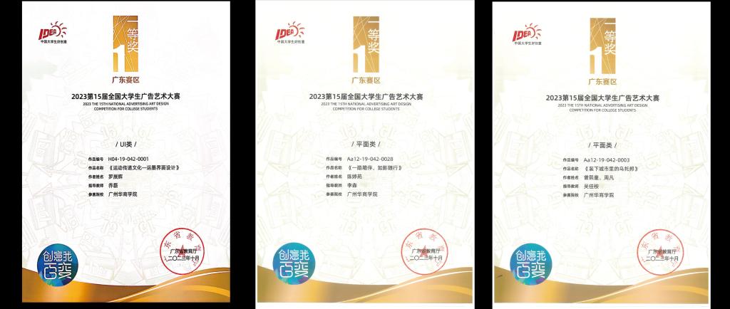 此次大广赛省级颁奖活动由广东省教育厅、全国大学生广告艺术大赛广东省分赛区组委会主办,由广东科贸职业学院、深圳大学传播学院、深圳大学国家级传媒实验教学示范中心承办。 本次学科竞赛,创意与设计学院共获得51个省级奖项和12个国家级奖项。 其中学生作品获得省级一等奖13项,二等奖14项,三等奖24项,省级优秀指导老师奖7项;全国二等奖1项,三等奖3项,优秀奖8项,企业特别奖1项。