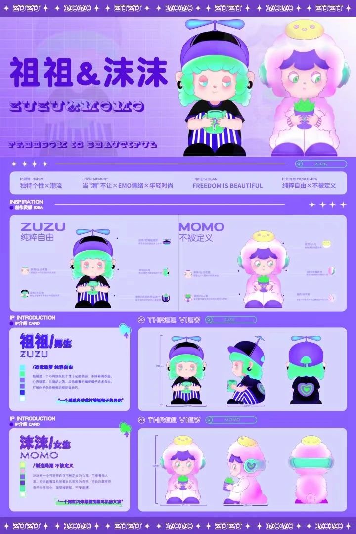 祖祖是一个不羁放纵且个性十足的男孩,手捧着洒水壶,心思细腻,共青能力强,经常戴着竹蜻蜓帽子追求自由,打破外界条条框框做自己,而沫沫则是一盒可爱善良且不被定义的女孩,手捧着仙人掌,经常戴着耳机听着自己喜欢的音乐,将自己藏匿在音乐世界当中,渴望被理解,不下受束缚。