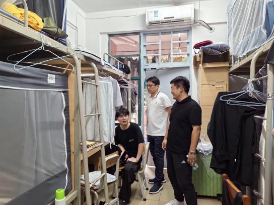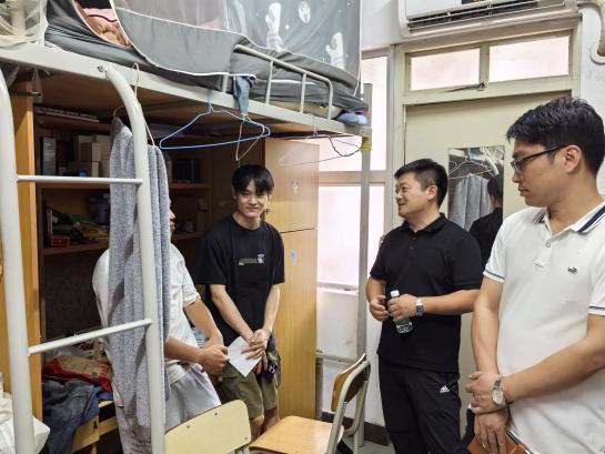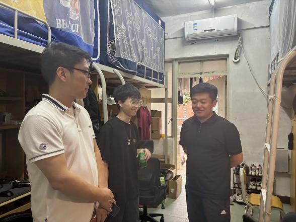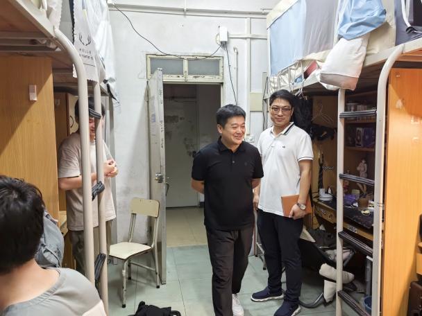 随后,院长老师们一行又来到了大三学生的宿舍。对于即将步入毕业年级的大三学生来说,他们面临着课程学习、实习实践以及未来职业规划等多重压力。杨磊院长详细询问了他们在学习、生活中遇到的实际问题和困难,如课程难度、实习机会、职业规划等。针对学生们提出的问题,院长老师们一一进行了耐心解答,并鼓励他们积极面对挑战,合理安排时间,努力提升自己的综合素质和能力。