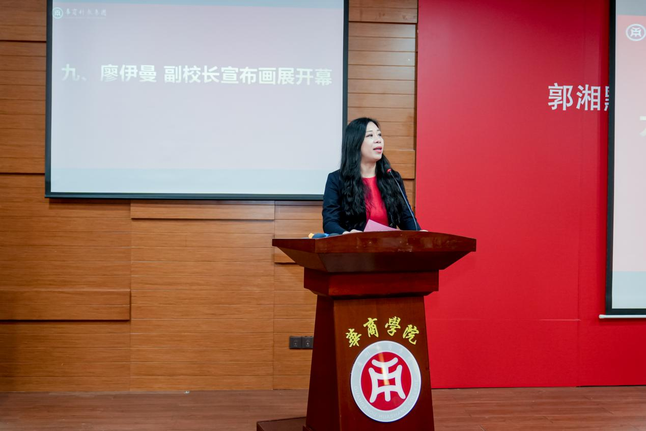 开幕宣布:廖伊曼副校长宣布画展正式开幕,现场掌声雷动,气氛热烈。