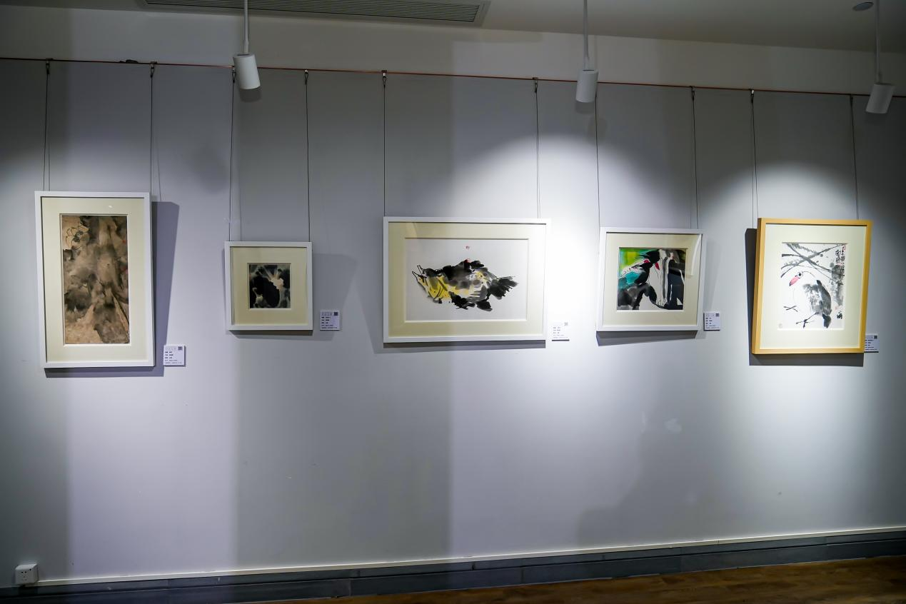 广州华商学院中央图书馆一楼美术馆“笔墨交响”画展现场