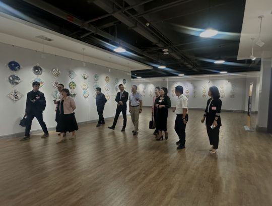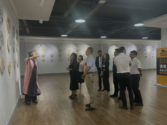 11月5日,学院党委陈玉欢书记、吕峻闽副校长、许娜副校长等一行10人,在我院杨磊副院长的陪同下,莅临现场参观了此次展览,我院李宏复教授向学校领导介绍学生相关作品。校领导们对每一件展品都仔细观赏,不时驻足欣赏,对学生们的刺绣技艺表示由衷的赞叹。