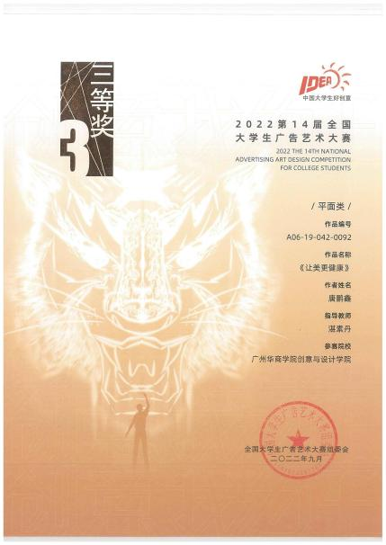 自2016年该学院积极组织师生参加各类学科竞赛,尤其是在全国大学生广告设计大赛中保持成绩连年攀升的强劲势头。近三年更是取得突破性进展:全国赛方面,2022年获三等奖4项、优秀奖12项;2023年斩获二等奖1项、三等奖3项、优秀奖8项;2024年实现历史性突破,摘得一等奖2项、三等奖5项、优秀奖10项。广东赛区同样表现抢眼:2022年包揽一等奖18项、二等奖40项、三等奖42项;2023年收获一等奖13项、二等奖14项、三等奖24项;2024年再创新高,一举夺得一等奖31项、二等奖39项、三等奖31项。这些骄人成绩正是我校创意与设计学院深化“以赛促教”、践行"艺商融合"人才培养模式的最佳印证。