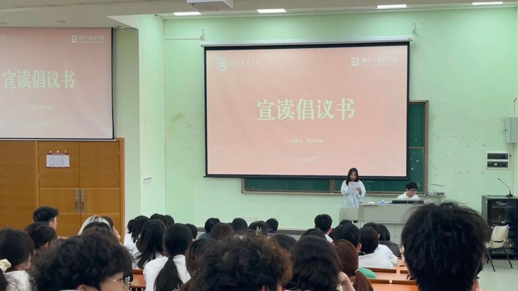 在议程推进过程中,蔡舒老师宣读了广州华商学院创意与设计学院关于学生文明养成的倡议书。这份倡议书深入贯彻习近平新时代中国特色社会主义思想,围绕落实立德树人的根本任务,助力构建“三全育人、五育并举”的育人格局而制定。学院依据这一理念,拟定了详细的工作方案,旨在引导学生养成文明遵章、礼让守法、明理诚信的良好习惯,共同打造和谐美丽的校园环境。