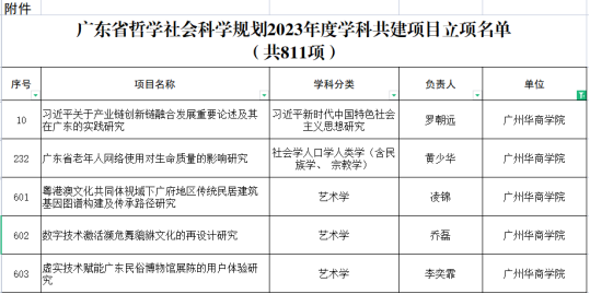 近日,广东省哲学社会科学规划2023年度学科共建项目立项名单公布,我院共有3个项目获批立项,分别是凌锦主持的《粤港澳文化共同体视域下广府地区传统民居建筑基因图谱构建及传承路径研究》项目、乔磊主持的《数字技术激活濒危舞貔貅文化的再设计研究》项目、李奕霏主持的《虚实技术赋能广东民俗博物馆展陈的用户体验研究》项目。