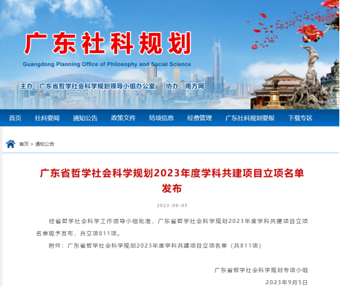 科研喜报:我院三个项目获广东省哲学社会科学规划2023年度学科共建项目立项
