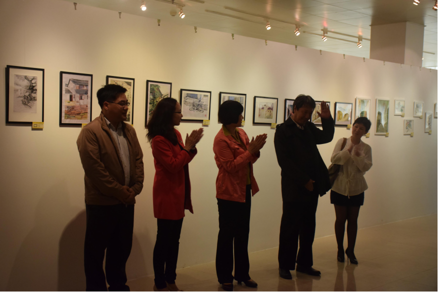 ,由文学院艺术系主办、学生会承办的2014级风景写生作品汇报展在中央图书馆一楼展厅顺利开幕。参加本次开幕式的嘉宾有学院王锦绣副院长、文学院王列耀院长、学生处刘德平处长、黄国富副处长、财务处余静秋副处长、艺术系乌日图主任、彭博娜副主任及系辅导员和带队的专业老师。