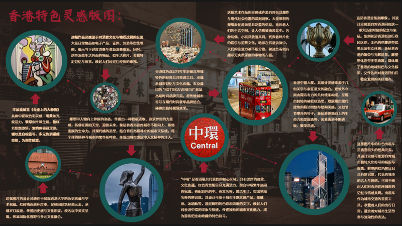 根据香港设计元素,同学们分组都做了设计灵感版,用于设计作品的灵感启发。