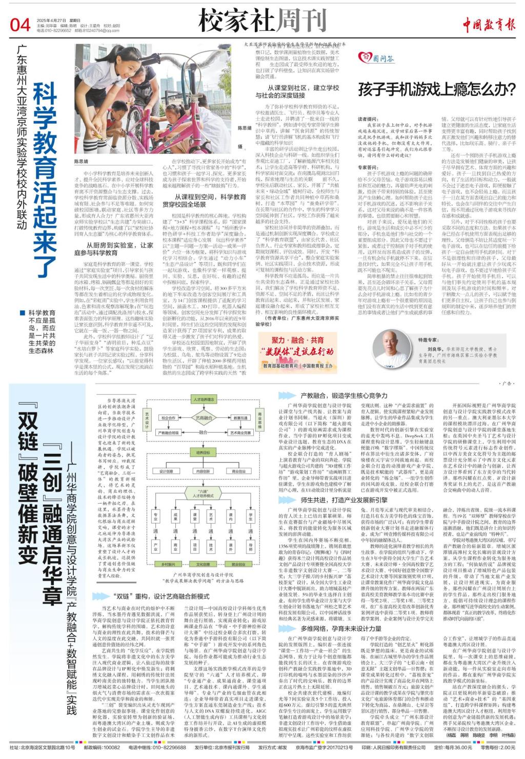 学院牵头成立“广州东部设计教育联盟”,串起广州商学院、广州应用科技学院、广州华立学院的资源链;与各校共建的“数字文创联合工作室”,让增城学子的作品直通粤港澳大湾区设计展。