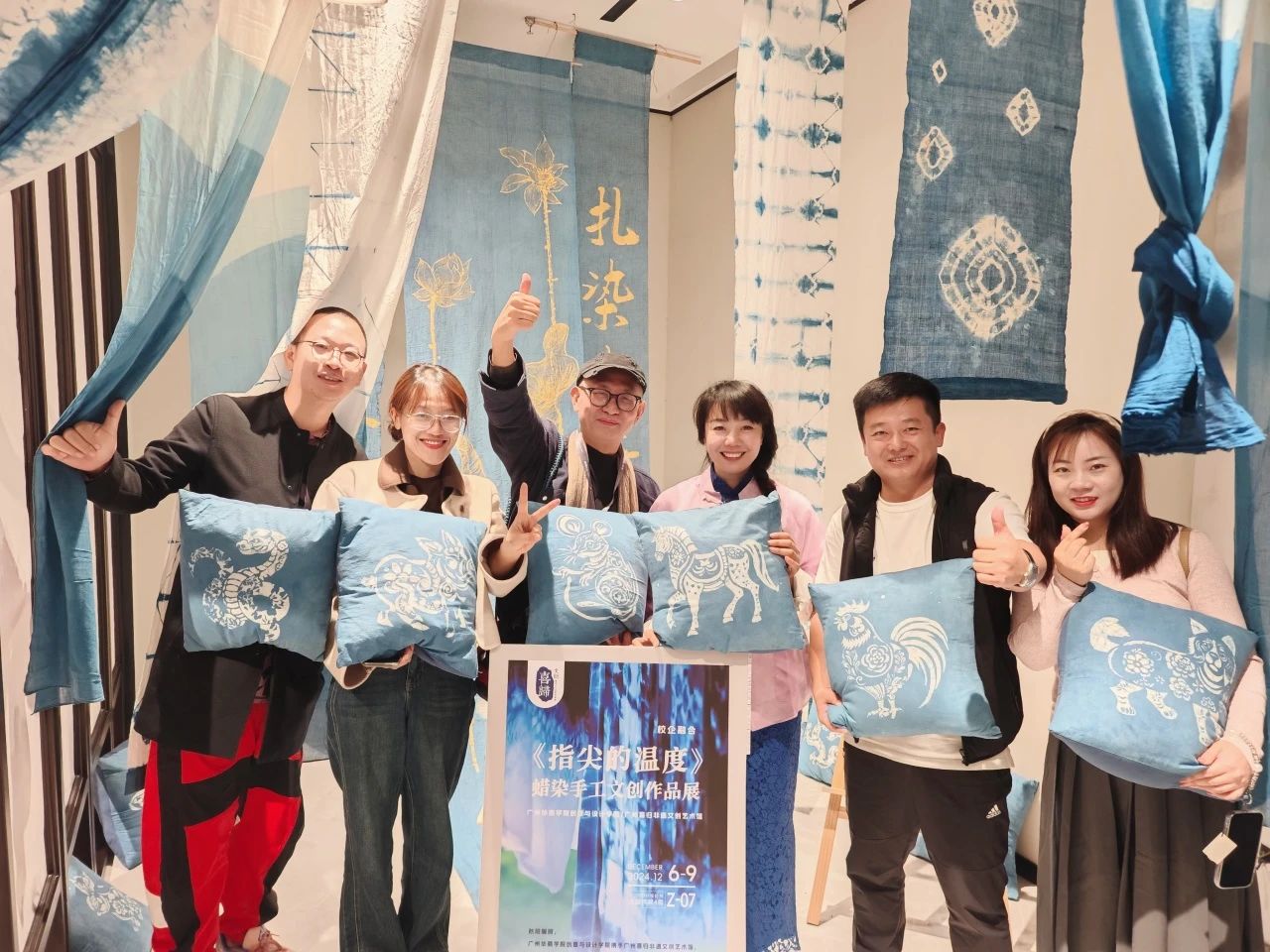 12月8日,我院领导杨磊副院长、视觉传达设计系系主任郭湘黔教授、常务副主任袁凤老师、李森老师、富缨淇老师、文佩老师一行人共同在广州设计周的专题展览会上观展。展览中,学生们的创作成果宛如一颗颗熠熠生辉的明珠崭露头角。它们既为传统非遗文化的鲜活载体,亦为当代审美观念与古老技艺相互交融碰撞而生的绚烂结晶。每一件作品均铭刻着同学们的成长轨迹与蜕变历程,创新了校企合作的新模式,通过“引进来”和“走出去”,充分彰显出校企合作于文化传承及教育创新层面所取得的斐然成效。由此可见,古老蜡染技艺于新时代焕发出蓬勃旺盛的生命力,正以其独有的魅力吸引着更多群体予以关注与热爱,同时亦使我们对非遗文化的前景满怀无限憧憬与期许。