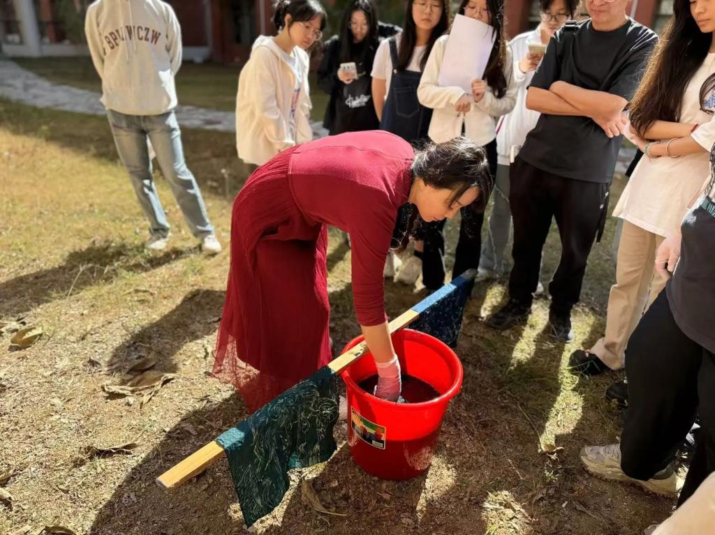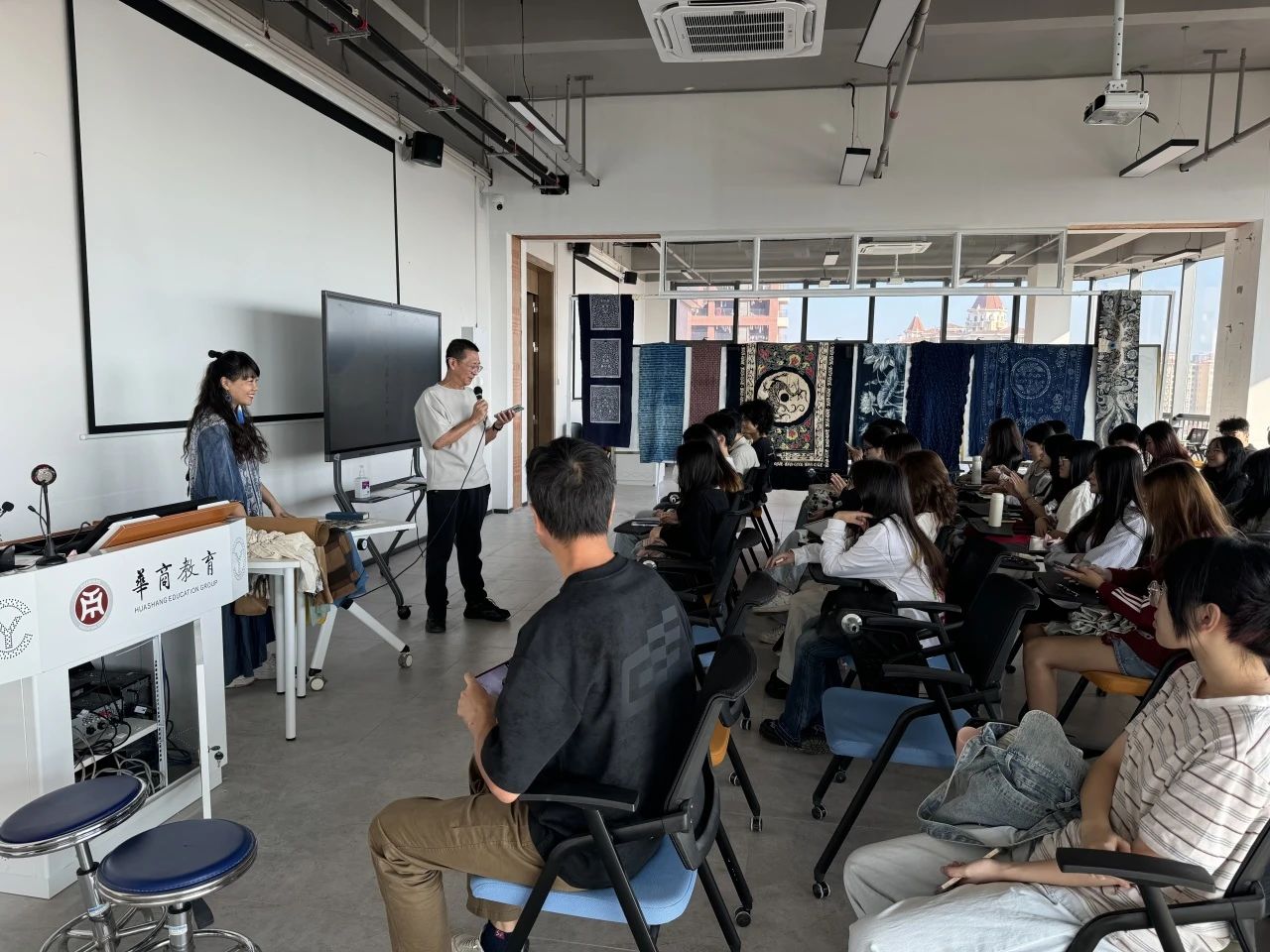 在秋日的和煦暖阳之下,广州华商学院创意与设计学院与广州喜归非遗文创艺术馆开启了一场独具特色的校企合作之旅,精心策划并推出了为期三周的蜡染手工创作课程。广州喜归非遗文创艺术馆馆长朵拉老师,深耕非遗文化领域,潜心钻研二十余载,她引领其团队悉心制定课程规划。在三周的课程期间,课堂内洋溢着同学们的热忱与活力,他们秉持赤诚之心深入探究蜡染这一古老且极具魅力的艺术样式。