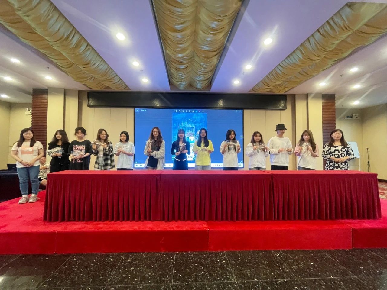 课程实践尾声数媒4班学生代表送花感谢湛素丹老师悉心指导