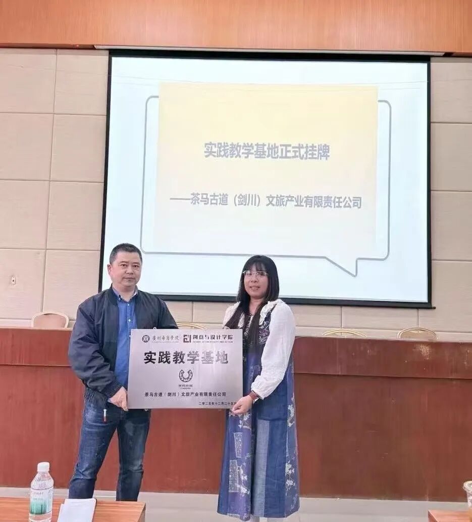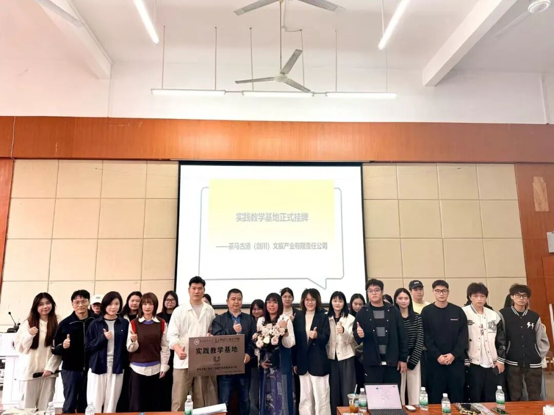 生代表的共同见证下,创意与设计学院副院长蒋明与茶马古道品牌主理人李婉琳共同为实践教学基地揭牌。